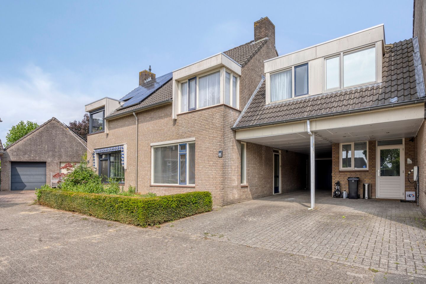- Carport en vrijstaande stenen garage