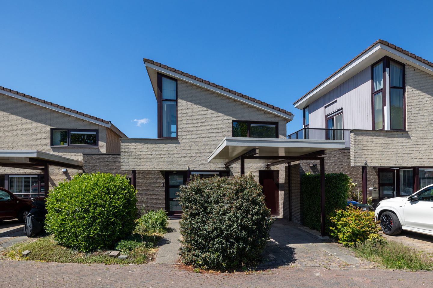 Achter in de tuin staan 2 praktische bergingen. Aan de voorzijde bevindt zich een carport voor je auto én een voortuin (met de optie voor een 2e eigen parkeerplaats).