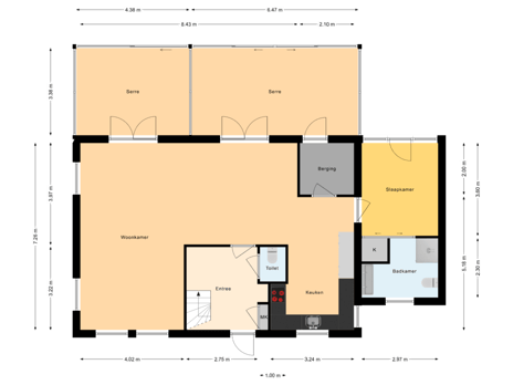 Binnen verwelkomt een royale hal met trapopgang, garderobe en gastentoilet u hartelijk. Vanuit hier stapt u de lichte, speelse woonkamer binnen, waar grote ramen het daglicht volop binnenlaten. De gezellige zit- en eethoek, verbonden met de veranda via openslaande deuren, vormen de perfecte setting om te ontspannen en te genieten van de tuin. De veranda, onderverdeeld in twee gezellige zithoeken, verbindt binnen en buiten en nodigt uit tot lange, zonnige momenten.