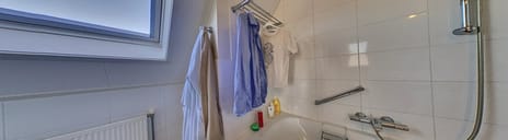 De verdieping telt naast een apart toilet, twee royale slaapkamers met ieder een eigen badkamer, één met ligbad en de ander met douche, perfect voor privacy en comfort. Een handige vlizotrap geeft toegang tot de ruime bergzolder, ideaal voor extra opslag.