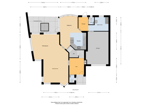 De bijkeuken is royaal van opzet en biedt volop ruimte om hier extra jassen, tassen of schoenen kwijt te kunnen. Ook bevindt zich hier nog een extra toilet, welke ook geheel betegeld is en voorzien van hangcloset en fonteintje. Doorlopend naar achteren bevindt zich hier de wasruimte, waar je de witgoed aansluitingen vindt en een uitstortgootsteen, extra handig. Via de bijkeuken heb je toegang tot de inpandige garage en het buitenleven.