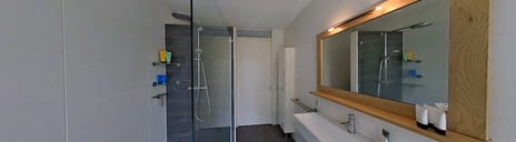 - Inloopdouche, ligbad, 2 toiletten, wastafelmeubel, douche, en wastafel