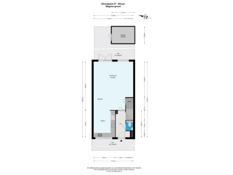 - 69 m² (12,50 meter diep en 5,50 meter breed)