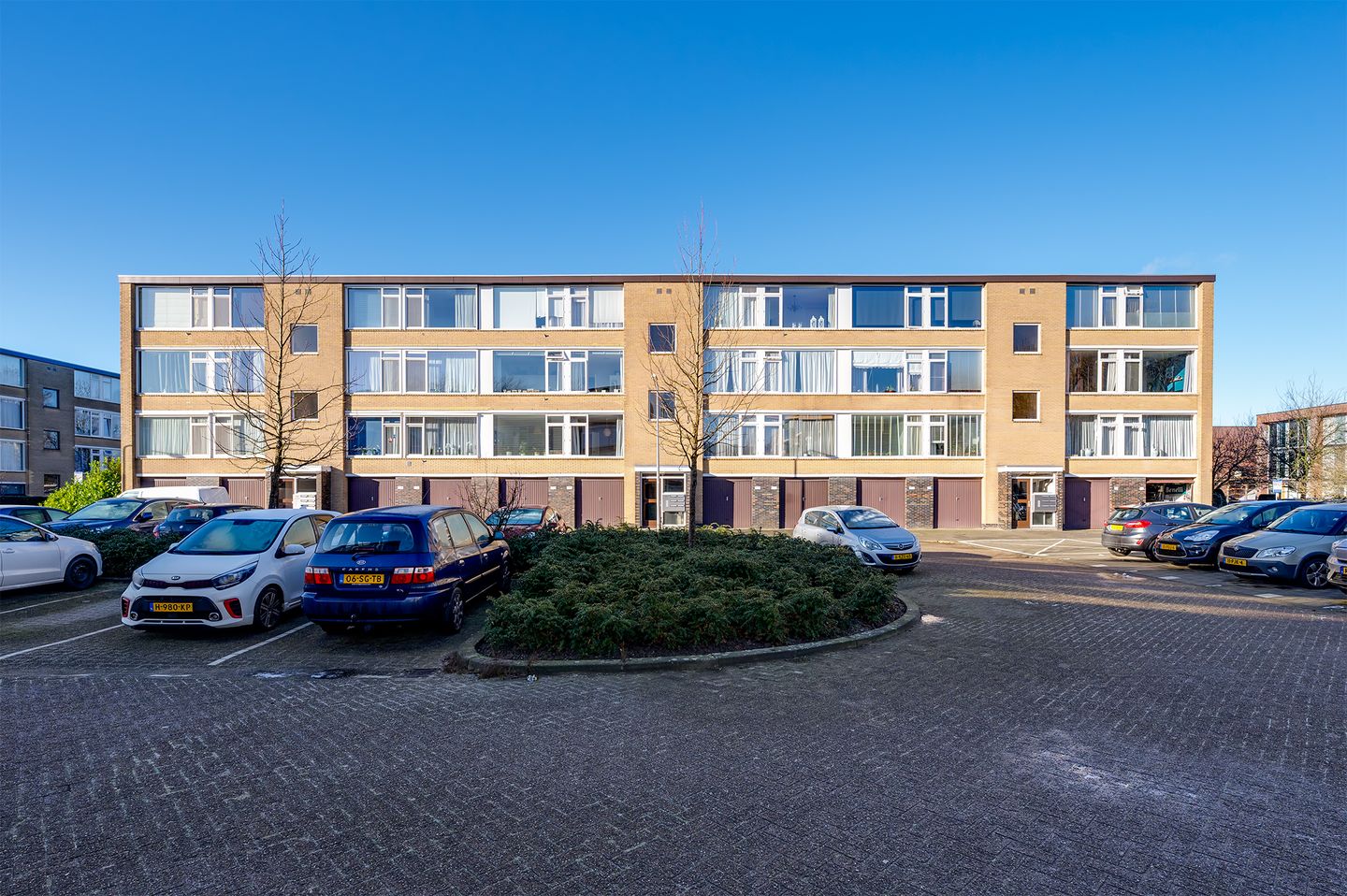 - Afgesloten portiek met brievenbussen, bellentableau en toegang tot de bergingen.