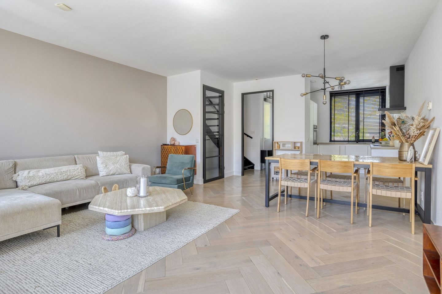 Middels een eigen voordeur bereik je de hal met bergruimte en de trap richting de woonverdieping. Je komt direct binnen in de woonkamer: wat een heerlijke ruimte. Op de vloer ligt, zoals je al hebt kunnen lezen in de inleiding, een mooie visgraat parketvloer. Een plaatje! Daarnaast is er meer dan genoeg ruimte voor een heerlijke zithoek en een aparte eethoek. Naast de tussenhal en de toiletruimte vind je ook de keuken aan de voorzijde opgesteld in een U-vorm waardoor deze van lekker veel snij- en kastruimte is voorzien. Daarnaast heeft de keuken ook modern inbouwapparatuur zoals een combimagnetron, een elektrische kookplaat met RVS afzuigkap, vaatwasser, koelkast en een vriezer. Je kunt wel zeggen dat de keuken dus van alle gemakken voorzien is.