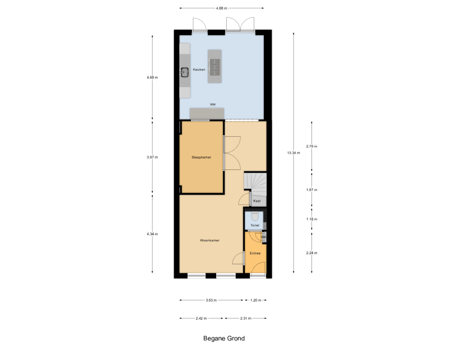- 191 m² (35,00 meter diep en 5,45 meter breed)