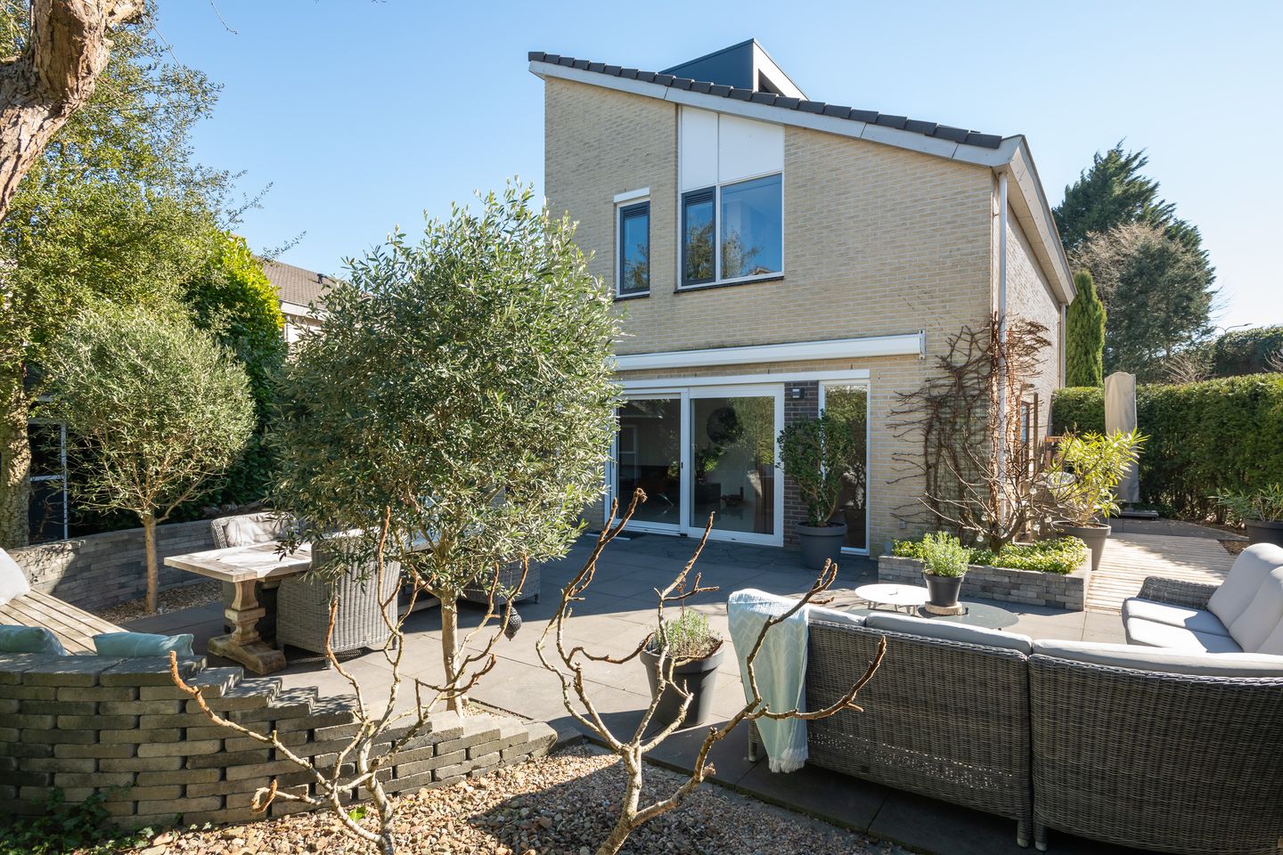 Entree, hal met garderobe, meterkast, ruime toilet met fonteintje. Via matglazen schuifdeuren bereikt u de living met marmeren vloer, vloerverwarming (hoofdverwarming), zijraam, nis, open haard met een natuurstenen plateau (Belgisch hardsteen/ Arduin) en een schuifpui (2021) naar achtertuin op het Westen en zijtuin op het Zuiden. De tuin is betegeld en voorzien van een groene haag, olijfbomen en terrassen aan de achterzijde en de zijkant. Elektrisch bedienbaar zonnescherm en watertappunt aanwezig. Via de zijkant bereikt u via een poort naar de oprit.