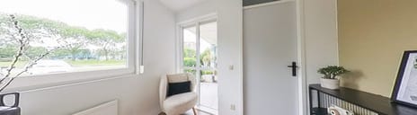 "Wat wij zo fijn vinden aan wonen op de Erasmuslaan is de rustige en groene omgeving. Omdat de woonverdieping op de eerste verdieping is kijk je, zittend vanaf de bank, zo uit over het parkje. Winkels, scholen en openbaar vervoer zijn op loopafstand, maar toch voelt het hier altijd rustig en veilig. We hebben met veel plezier genoten van de fijne tuin en het zonnige dakterras, ideaal voor lange zomeravonden. Een heerlijke plek om te wonen!"