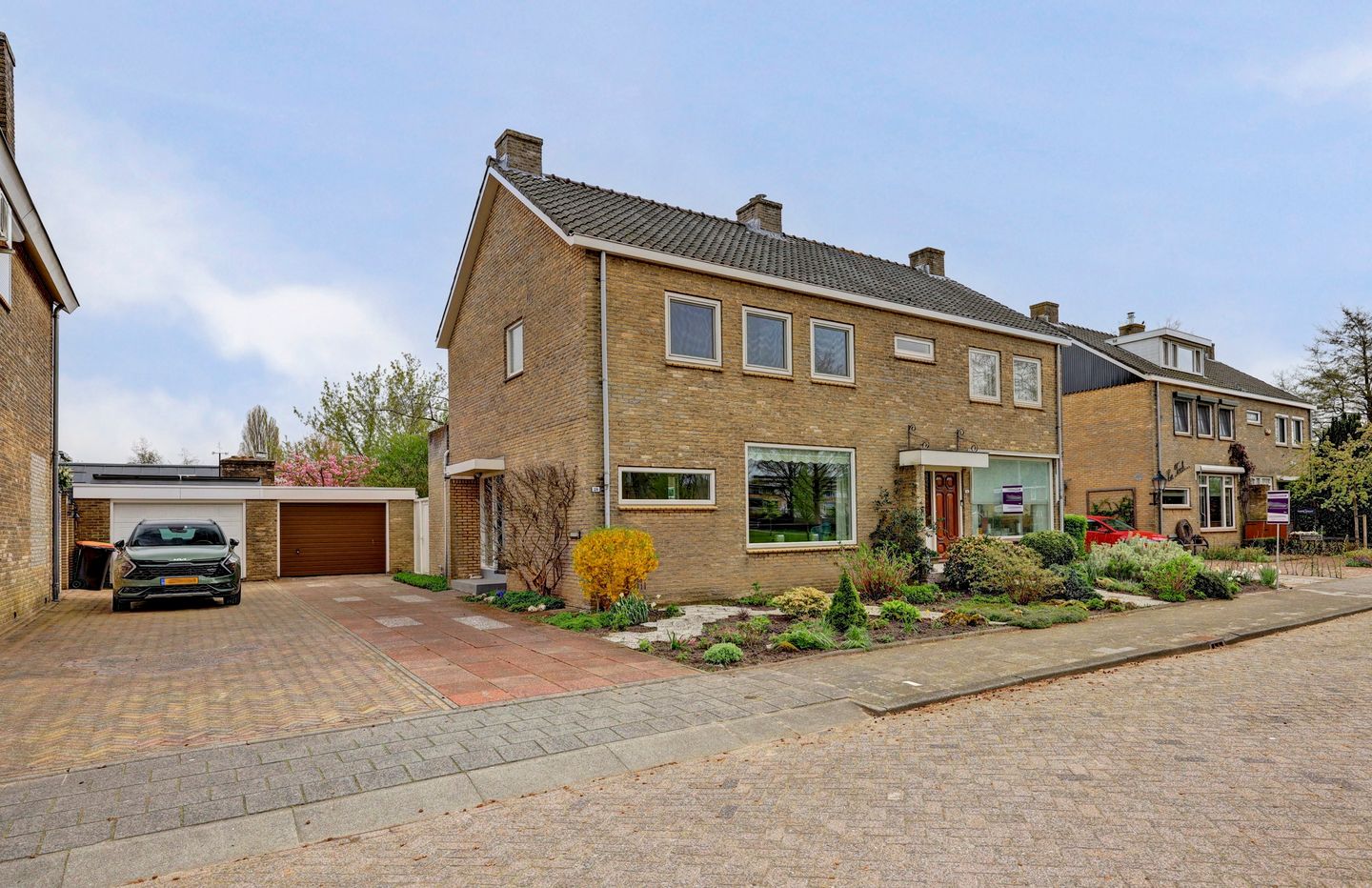 • Losstaande garage met een oprit die geschikt is voor meerdere auto’s.