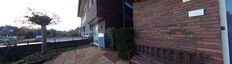Een stijlvolle entree maak je via de statige traptreden met plantenborders, welke leiden naar de voordeur. Aan de zijzijde bevindt zich een handige poort die direct toegang geeft tot de achtertuin. De verzorgde oprit loopt subtiel af naar beneden en geeft toegang tot de riante, inpandige garage.