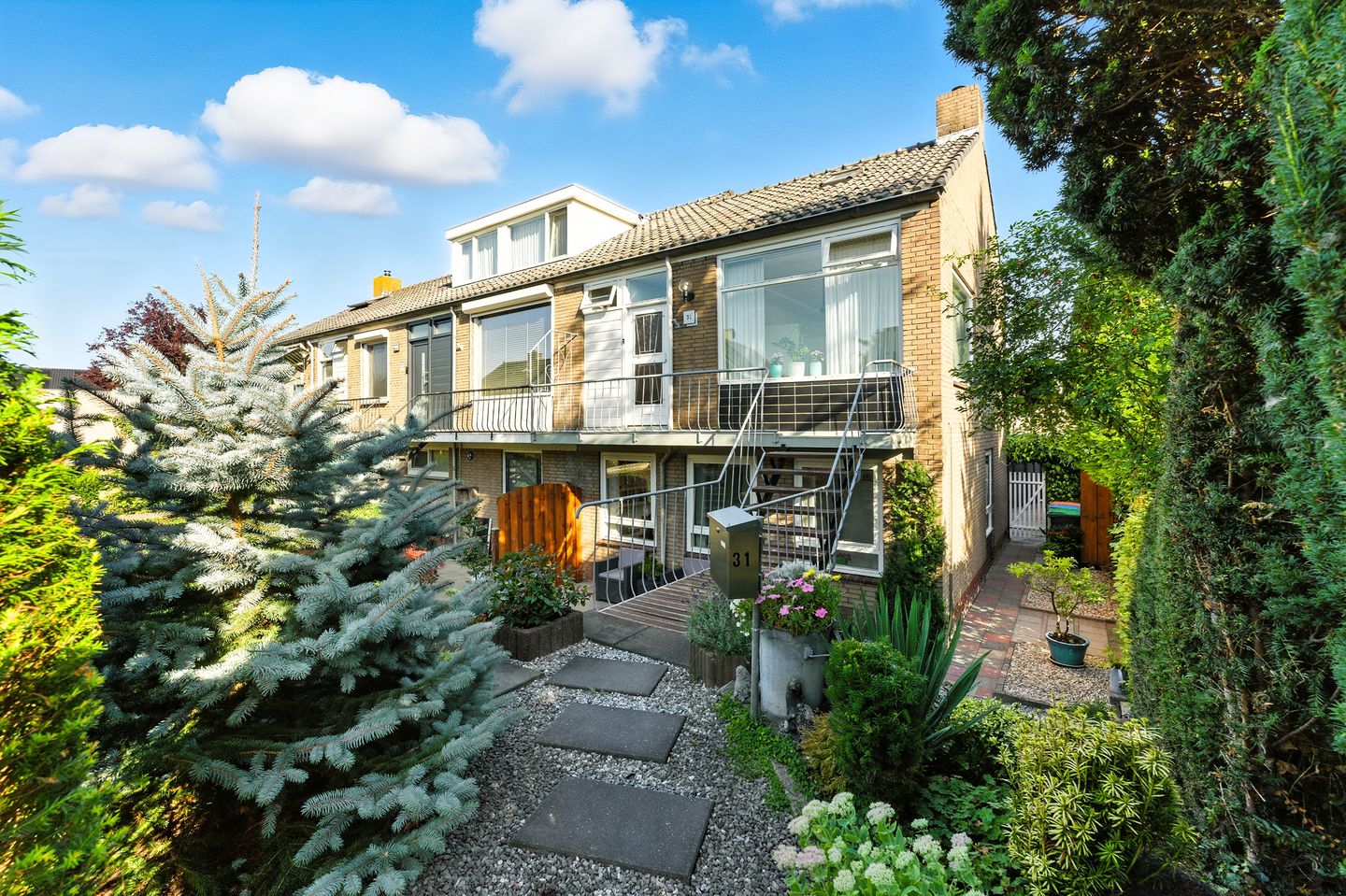 Voortuin: De woning beschikt over een prachtige voortuin (afm. ca. 8.70 x 7.80) op het zuiden, waar je heerlijk ‘s ochtends van de zon kunt genieten. Een trap van de straat leidt direct naar de voordeur en naast de woning ligt nog een handige zijtuin (afm. ca. 8.10 x 1.80).