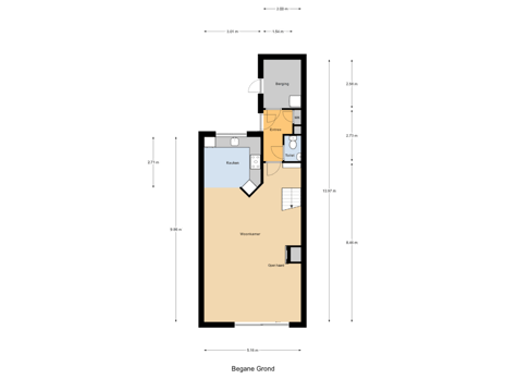 - 49 m² (9,06 meter diep en 5,44 meter breed)