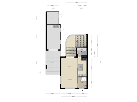 De oprit met carport, links naast de woning en voor de garage, biedt plaats aan 2 auto's. Hier kunt u een eigen laadpaal aanleggen voor laden van een elektrische auto. De keurig nette garage meet 6.13 x 3.23 en is daarmee ca. 20 m²! De garage heeft elektra, is voorzien van een electrische hefdeur en biedt plaats aan een auto, fietsen, extra koelkast en/of vriezer en er ligt een keurig nette vloer in. Bij de parkeervakken vooraan in de Kaar is een publieke laadpaal aanwezig en ook om de hoek bij de Boerenschuur. Aangebouwd achter de garage is nog een houten berging van ca. 8 m² o.a. voor het tuingereedschap. Hier is een buitenkraantje aanwezig.