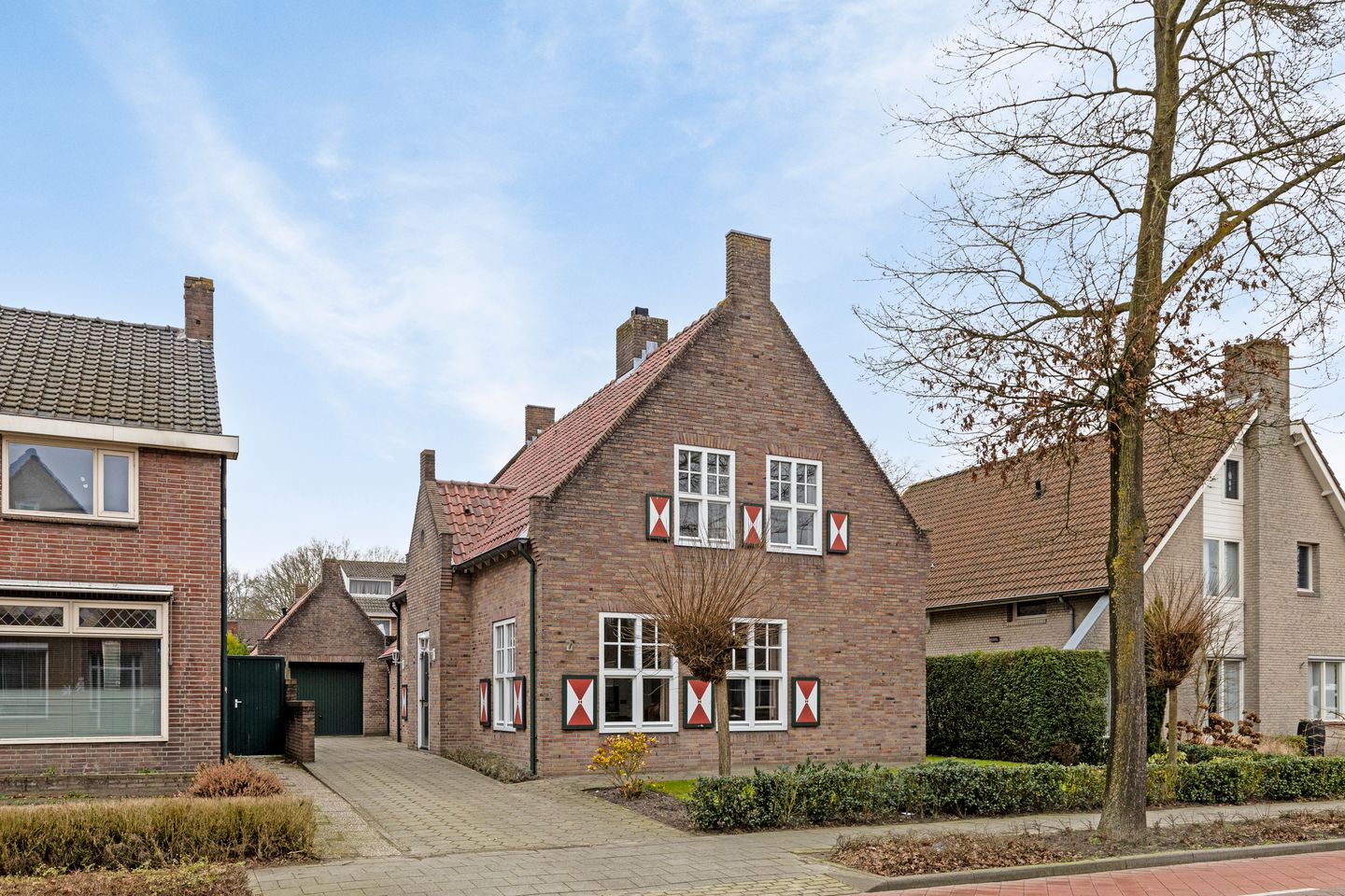 Buitenkans! Nieuw in de verkoop: de ruime vrijstaande woning met de rood-wit-groene luiken in Riel! Bij de entree van het dorp, en dus makkelijk bereikbaar met auto, fiets of bus, staat deze heerlijke eengezinswoning. Dit mooie ruime huis met lange oprit, vrijstaande garage ook met kap en de grote tuin heeft een romantische uitstraling door de rood-wit-groen geschilderde luiken. Ze kunnen niet echt dicht. Door de dwarskap doet het huis aan een trapgevel denken.