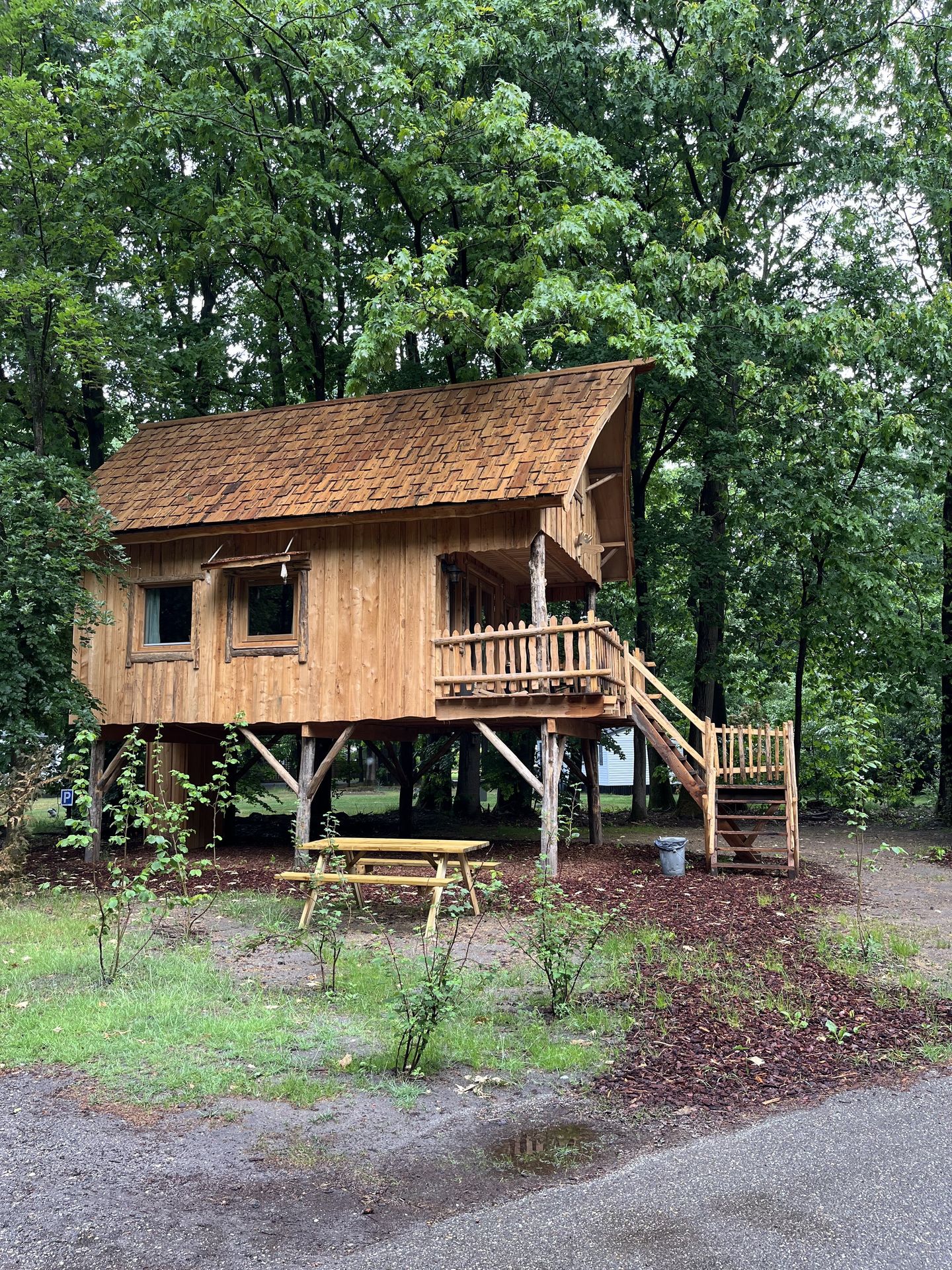 In deze heerlijke Wooden lodge is het spannend slapen op grote hoogte. Genieten met je gezin of vrienden, samen spelletjes spelen en lekker ravotten in de bossen. Even geen tijd om te haasten maar vieren dat je vakantie hebt. De lodge heeft een grote masterbedroom en een spannende kinderslaapkamer op de eerste verdieping. Op de begane grond is een badkamer met regendouche, een toilet, een woonkamer met open keuken en zit-eethoek.