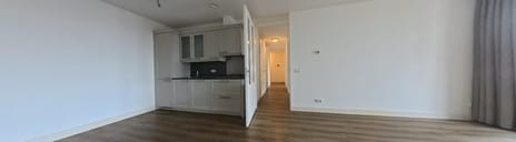 De woonkamer is ruim opgezet en heeft een prettig lichtinval door de grote raampartijen. De open keuken is netjes afgewerkt en voorzien van een vierpits gaskookplaat, afzuigkap, vaatwasser en koel vries combinatie.