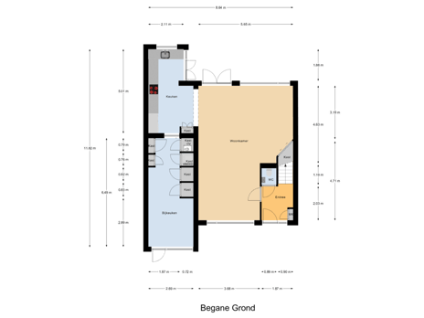 - 49 m² (5,35 meter diep en 9,25 meter breed)