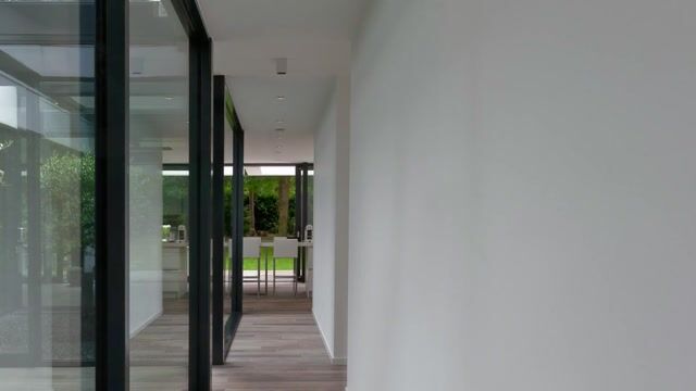 Door de vele raampartijen, patio’s en schuifpuien is binnen is buiten en vice versa en is dit juweel 1 met de natuur en haar aangelegde tuin.