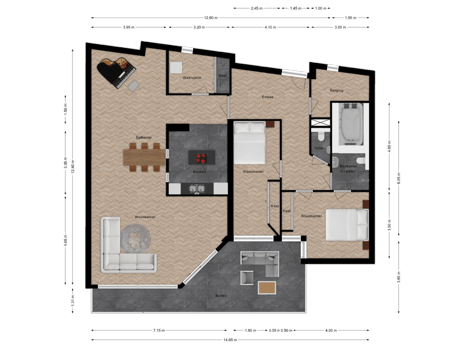 Het dakterras is een waardevolle en comfortabele buitenruimte die perfect past bij het karakter van dit penthouse. De ruimte is ruim van opzet en biedt meer dan genoeg plaats voor een zitruimte, waardoor het een prettige plek is om te ontspannen en buiten te genieten.