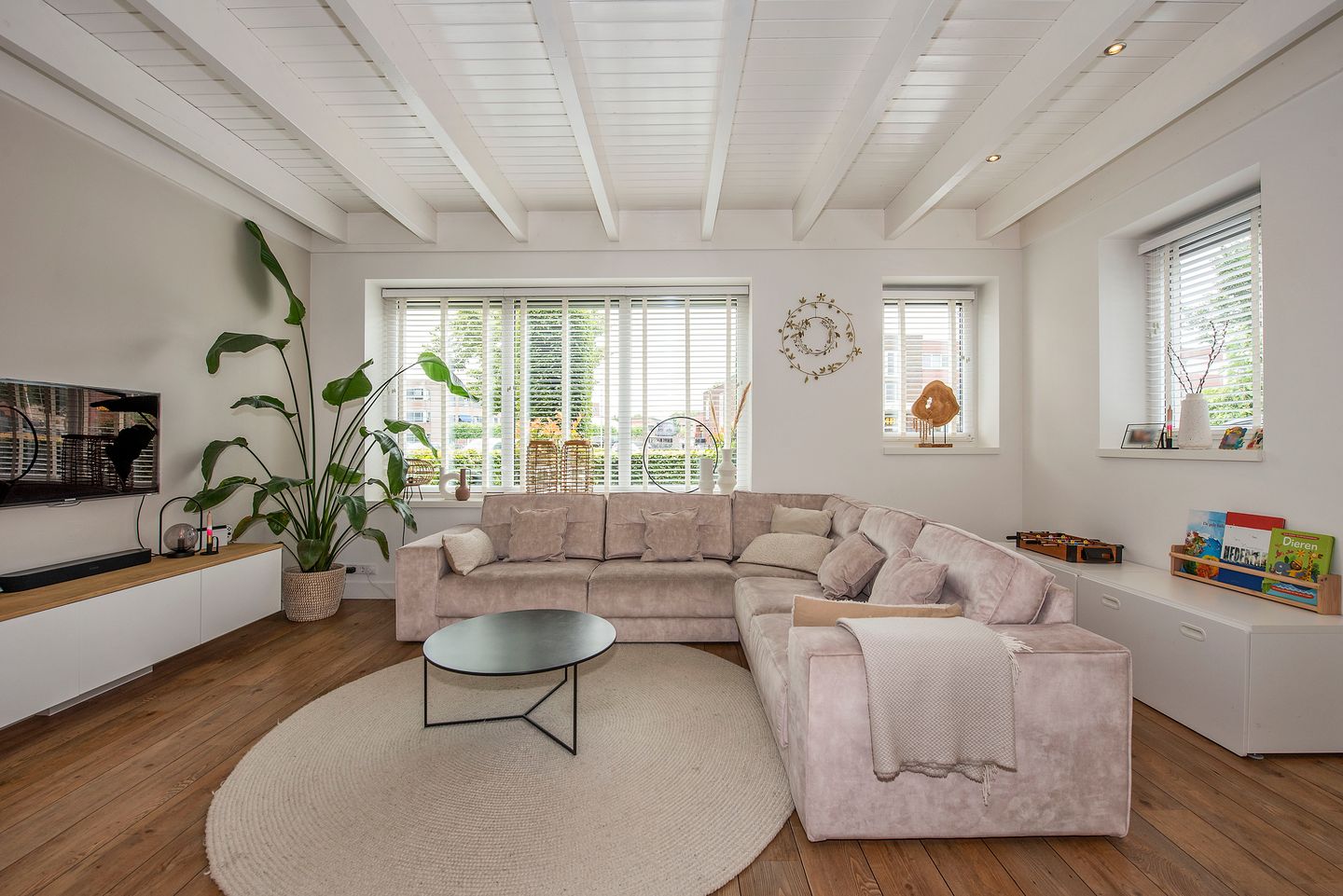 Bij binnenkomst is de toon gelijk gezet: pak pen en papier maar om mee te schrijven met de lijst van voordelen. Of loop gewoon eerst een rondje; prachtig om een idee te krijgen van het woongenot dat dit huis dagelijks biedt. Aan alles is te merken dat de verkopers kosten noch moeite hebben gespaard om hun huis tot in de puntjes af te werken. Zowel de kleurstelling als de materialen zijn zorgvuldig en met smaak gekozen. Het huis ademt de landelijke sfeer van een nieuwbouwwoning!