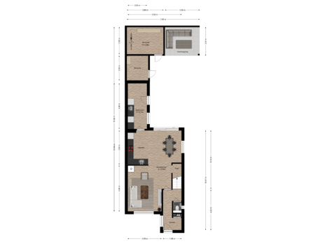 De hal is ruim van opzet, met strakke muren en een verzorgde vloer die meteen de toon zet voor de rest van de woning. De hoge plinten en nette afwerking benadrukken de kwaliteit en het oog voor detail dat u overal terugziet.