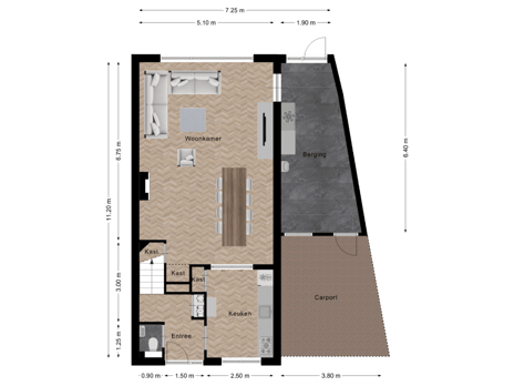Bij aankomst valt direct de nette en verzorgde uitstraling van de woning op. De eigen oprit met carport biedt niet alleen parkeergelegenheid, maar vormt ook een overdekte en verlichte entree.