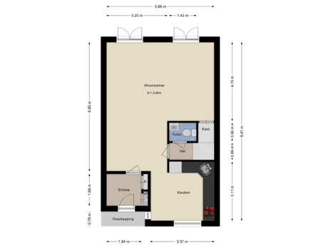 Entree met garderobe, meterkast en toegang tot de woonkamer