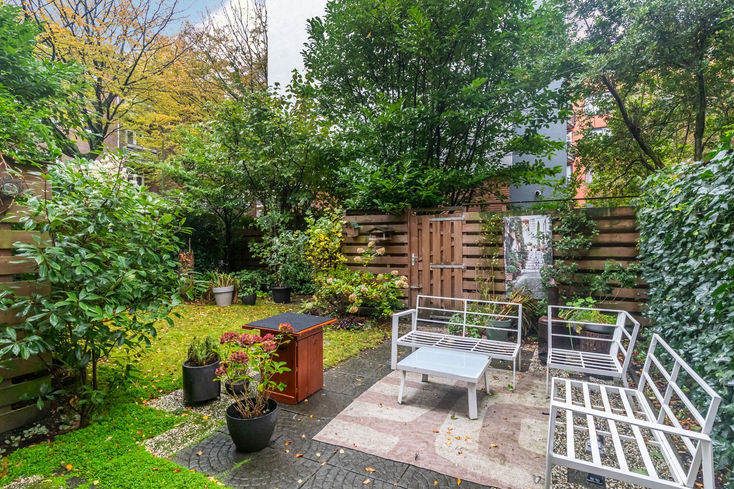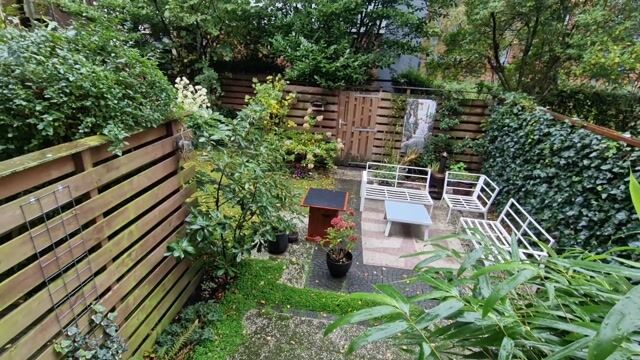 De achtertuin (totaal ca.89m2) is verdeeld in twee delen. Het gedeelte dat direct achter het appartement (ca.890x486) (eigendom) en een gedeelte (ca.780x590) (gebruiksrecht). Een heerlijke plek waar je heerlijk in de zon kan zitten.