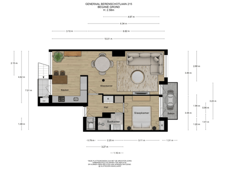 - 60 m² (8,50 meter diep en 7,00 meter breed)