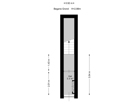 Entree op straatniveau. Binnentrap naar 1e etage, alwaar hal met modern toilet en vaste kast met wasmachine aansluiting.