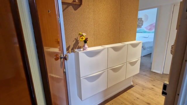 Through the communal entrance with doorbells and letterboxes, you will reach the flat located on the 2nd floor via the stairs. The ground floor has its own enclosed indoor storage space.
