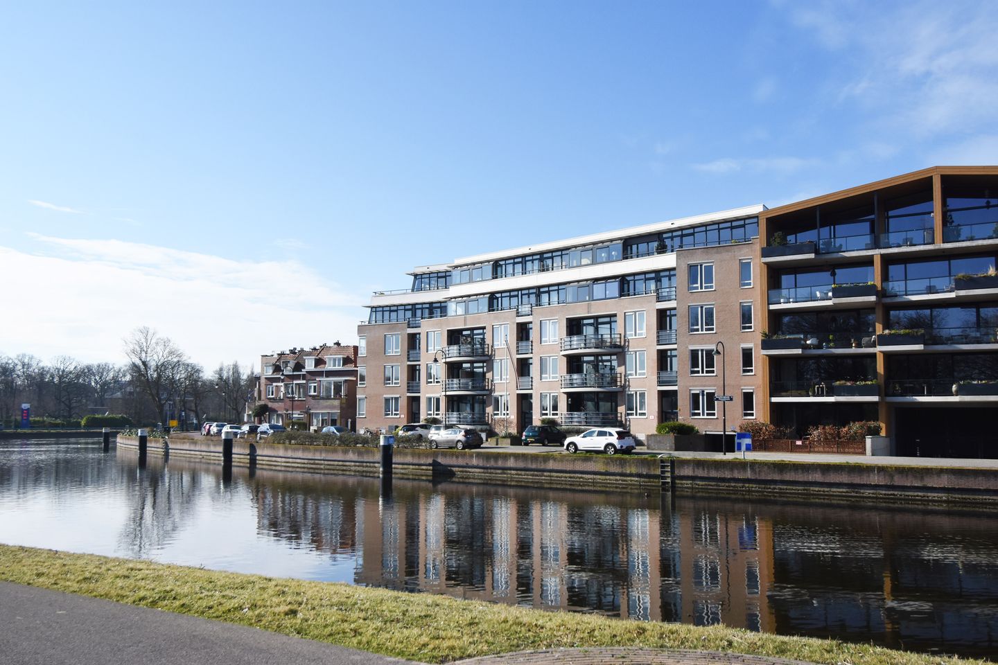 Op een prachtige locatie met weids uitzicht over de Vliet en park Arentsburgh een ruim drie kamer appartement van 104m2 met energielabel A, een balkon aan de voorzijde en terras van aan de achterzijde van het appartement, een eigen berging en eigen garage in de onderbouw.