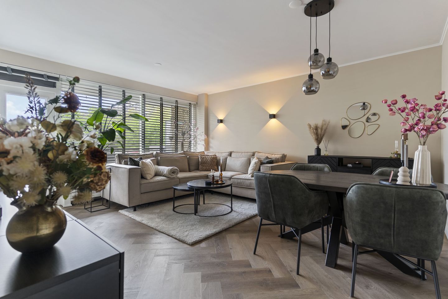 De gehele woning is afgewerkt met een hoogwaardige PVC-vloer in visgraatmotief en strak gestuukte wanden – instapklaar en met oog voor detail.