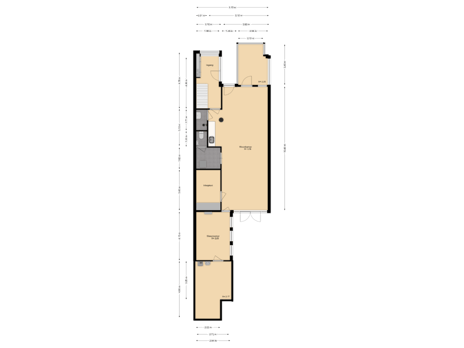 - 70 m² (15,70 meter diep en 6,77 meter breed)