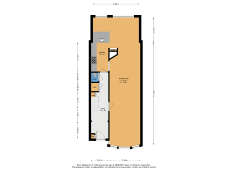- 40 m² (6,60 meter diep en 5,60 meter breed)