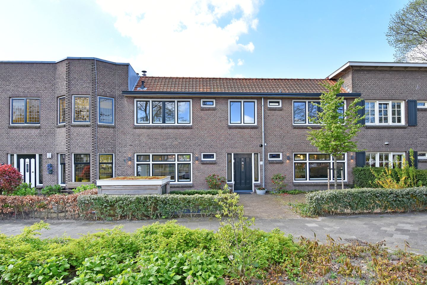 De voortuin is ruim en functioneel ingericht, met een verdiepte afsluitbare fietsenberging die volledig is geïntegreerd in het geheel. Zo komen praktische bruikbaarheid en uitstraling perfect samen.