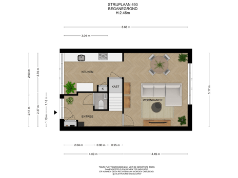 - 43 m² (7,92 meter diep en 5,37 meter breed)