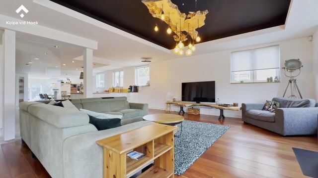 In de royale woonkamer ervaart u direct de ruimte: een open opzet van voor- tot achtergevel, met aan de voorzijde een gezellige zithoek met ramen aan drie zijden. Hier vindt u ook de sfeervolle houtkachel.