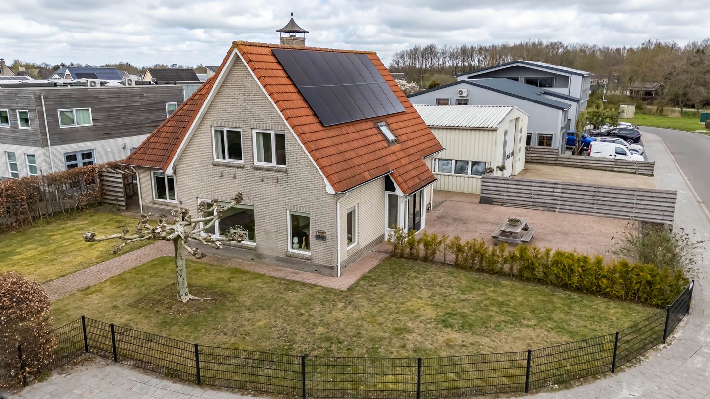 Aan de rand van Roden, op een kleinschalig en overzichtelijk bedrijventerrein, staat deze verrassend ruime en degelijk gebouwde woning met een grote geïsoleerde loods en werkplaats. Een unieke kans voor wie wonen en werken wil combineren, of simpelweg op zoek is naar ruimte en flexibiliteit.