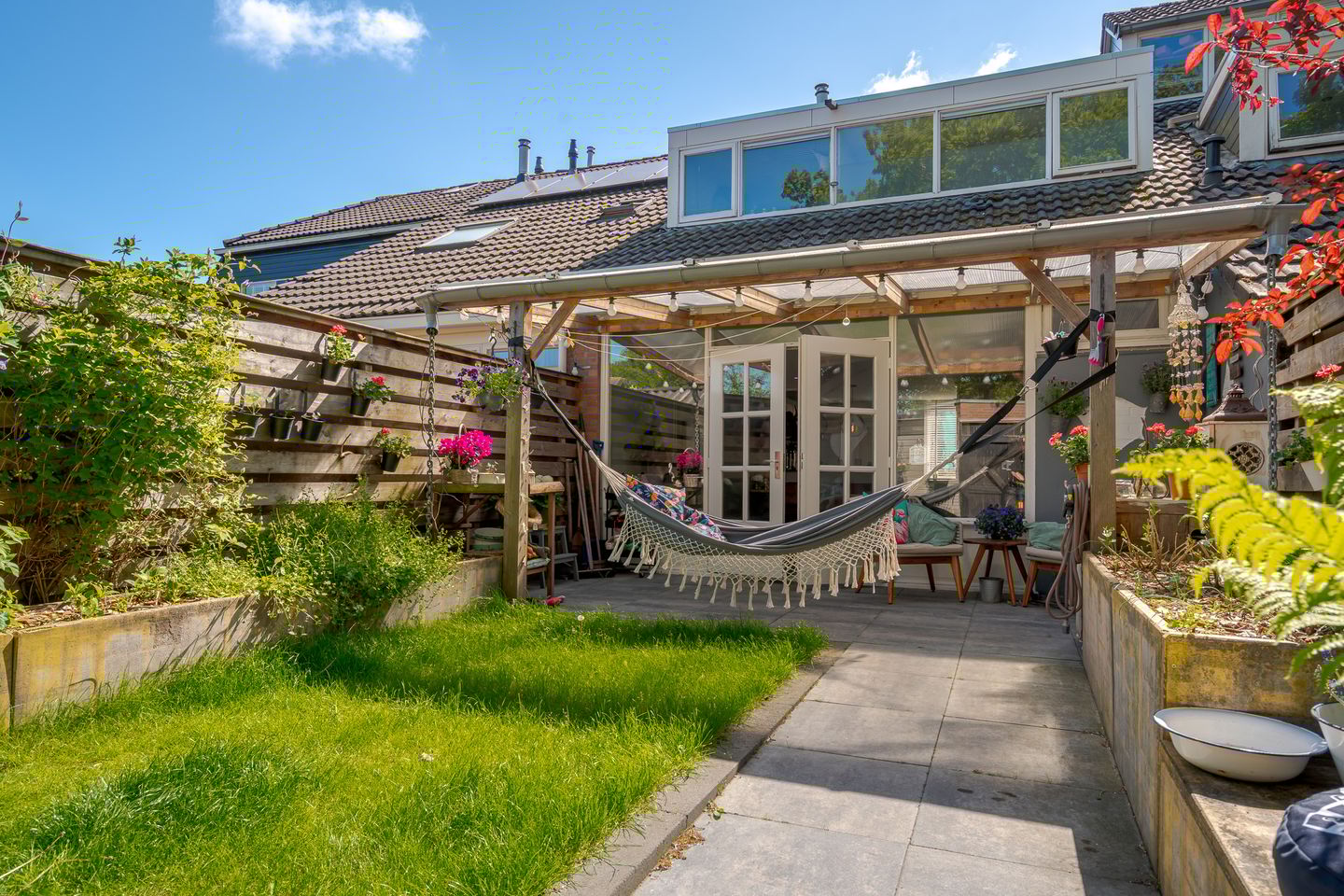 Aan een rustige woonstraat staat deze verrassende tussenwoning met een ruime tuingerichte woonkamer, open keuken en een bijkeuken. Op de verdieping zijn 3 slaapkamers en een moderne badkamer aanwezig. Zowel de badkamer als één van de slaapkamers zijn vergroot door een dakkapel(kunststof dus onderhoudsvrij!) Het onderhoud van de woning is goed, de huidige bewoner heeft de afgelopen jaren flink geïnvesteerd in het huis wat je duidelijk terugziet. Duurzaam verwarmen kan via de pellet kachel of airco, uiteraard werkt ook gewoon de CV installatie naar behoren. In 2022 is de woning daarnaast voorzien van 8 zonnepanelen waardoor de vaste lasten lekker laag blijven. De gezellige tuin ligt op het westen, biedt zowel zon als schaduw, is voorzien van een professionele overkapping én 4 stroompunten en is te bereiken middels een achterom. In de tuin tref je o.a frambozen, mooie klimmers en vaste planten aan. Achter de woning ligt een pleintje met parkeerplaatsen en een speelvoorziening.