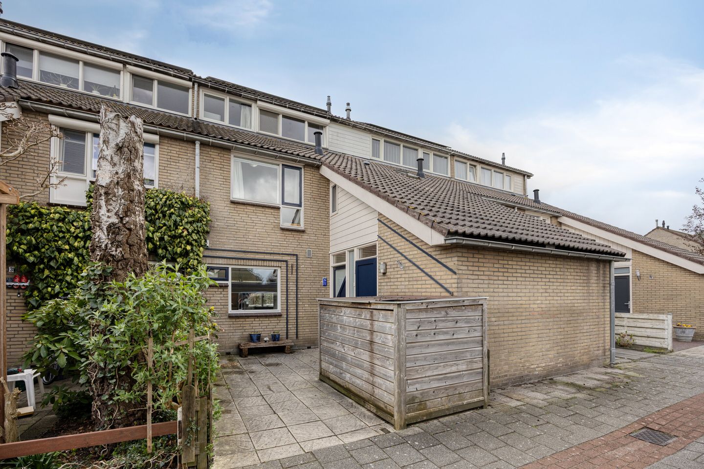 Deze woning beschikt over een heerlijke achtertuin, gelegen op het westen en via de schuifpui in de woonkamer en via de achterom bereikbaar. Vanuit de woonkamer kom je direct terecht op het terras, waar je bijvoorbeeld een relaxte loungeset kwijt kunt. Achterin de tuin is een houten berging (ca. 7 m²) met daaraan een overkapping gerealiseerd. Hier is nog een fijne zithoek gecreëerd. De tuin bevat sierbestrating, een grasstrook en beplanting.