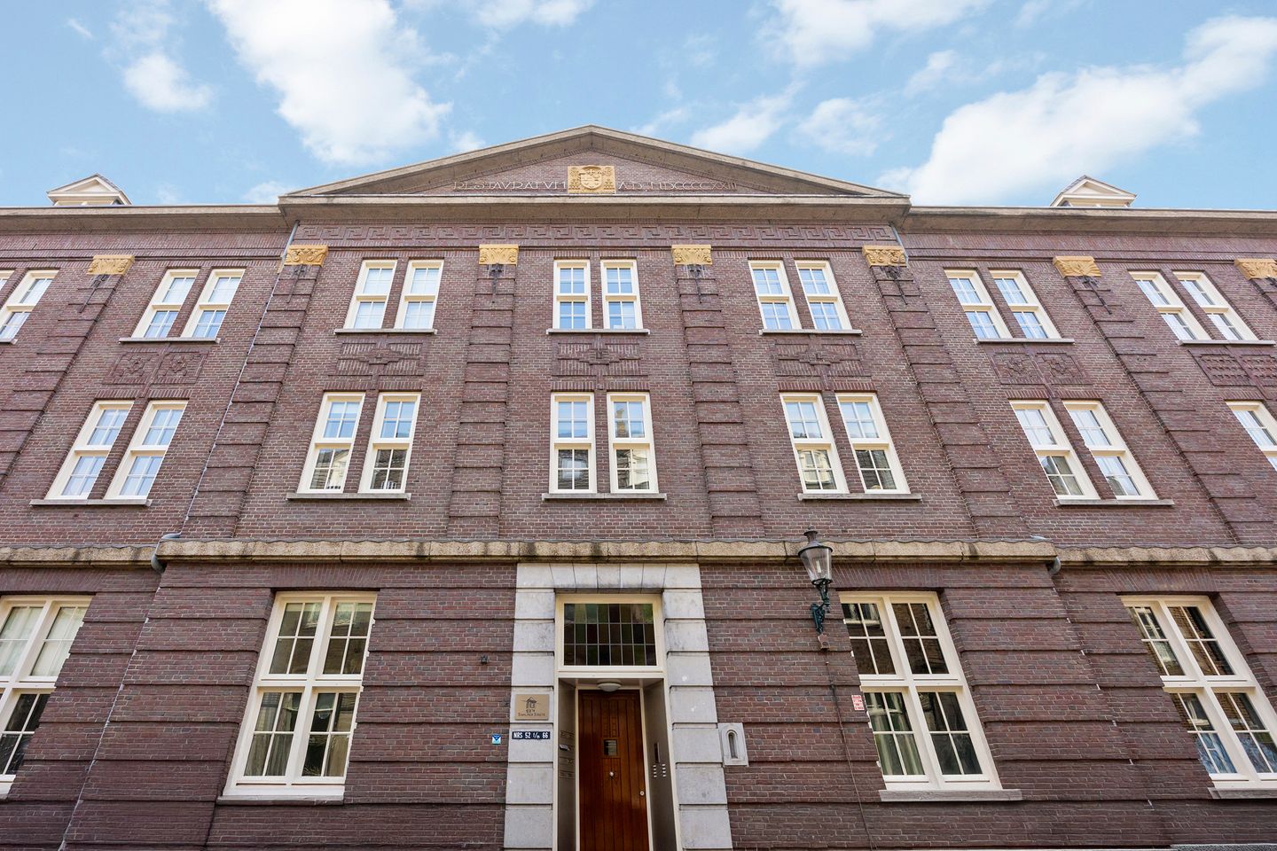 Bij binnenkomst in de entreehal van het complex, valt gelijk de statige, charmante sfeer op. De mooie trappartij leidt naar de verdiepingen, maar er is ook een lift aanwezig.