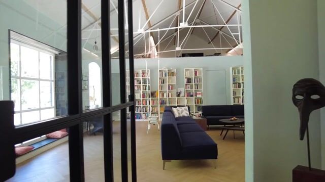 Bijzonder detail zijn de spanten die in het zicht zijn gebleven waardoor de industriële herkomst van dit object mooi gecombineerd wordt met de moderne, eigentijdse sfeer van de bewoners.