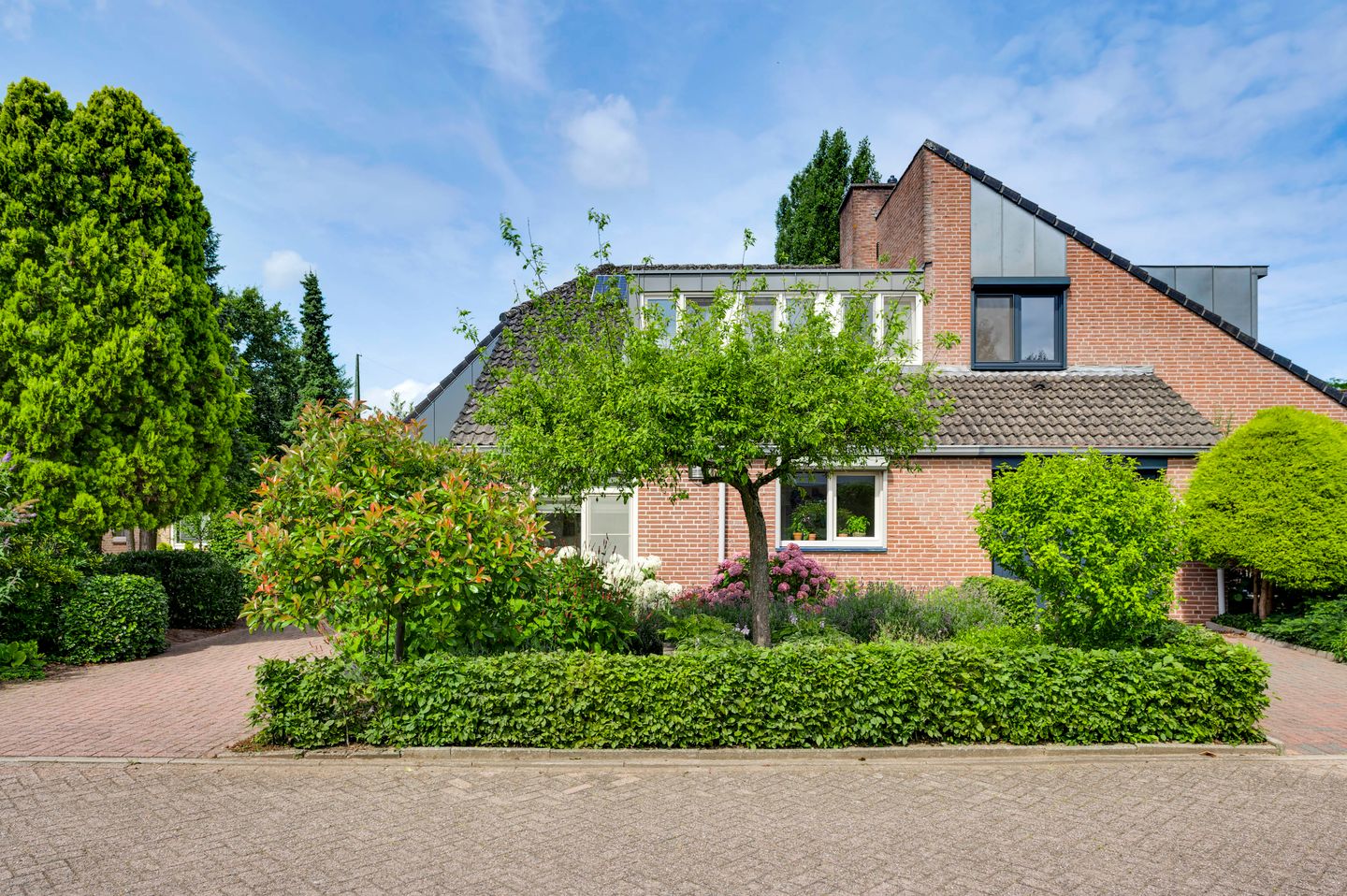 Aangrenzend heeft de woning een smalle maar lange garage en extra zolderruimte. Dus aan bergruimte is er geen gebrek. De garage bereik je via de achtertuin of de oprit. Links naast de garage is de vrije achterom. Verder is de achtertuin weelderig begroeid en door groen omzoomd met in het midden een groot vlonderterras.