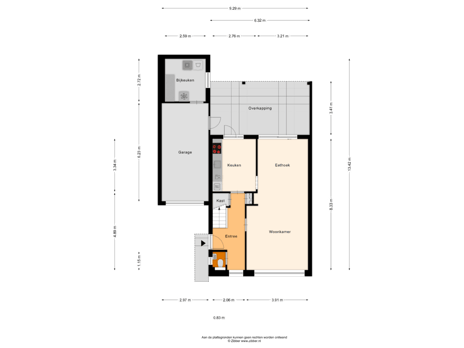 - 108 m² (12,00 meter diep en 9,00 meter breed)