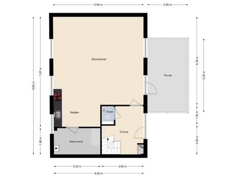 Deze woning is de 2e woning in de rij en is 124 m² groot. Dit huis ligt op een perceel van 216 m² en heeft ook een eigen berging, gelegen op dit perceel. Op de begane grond kom je binnen in de hal en hier liggen ook het toilet en de meterkast. Aan de achterzijde ligt de keuken, welke beschikt over de volgende inbouwapparatuur: inductiekookplaat, afzuigkap, koelkast met vriesvak, combi magnetron en vaatwasser. Naast de keuken ligt een bijkeuken, waar aansluitpunten voor het witgoed en de technische installaties geplaatst zijn. De woonkamer ligt aan de voorzijde van deze woning. Op de 1e verdieping zijn via de overloop 3 ruime slaapkamers en de badkamer te bereiken. De badkamer bestaat uit een inloopdouche, wastafelmeubel en zwevend toilet. Tenslotte heeft deze woning een stadstuin, aan de voorzijde gelegen.