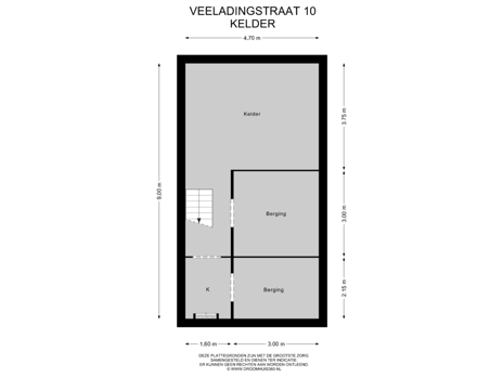 De kelder is toegankelijk vanuit de hal. De kelder bevindt zich onder het hele huis. Hier bevinden zich drie ruime opslagruimtes waar je spullen of je voorraad boodschappen kunt opslaan. De ruimtes zijn ook ideaal als hobbyruimte, fitnessruimte, speelruimte etc. te gebruiken.