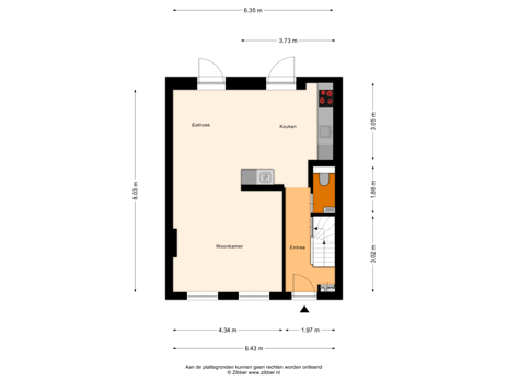 - 17 m² (2,80 meter diep en 6,00 meter breed)