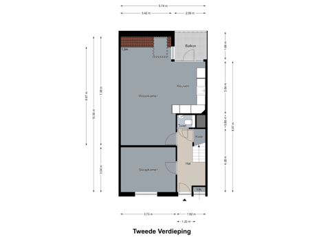 De hal is voorzien van een nette tegelvloer en strak stucwerk. Meterkast bevindt zich naast de voordeur. Het gedeeltelijk betegelde toilet heeft een luxe uitstraling en is voorzien van een fonteintje. De gezellige woonkamer met laminaatvloer (2021) biedt ruimte voor zowel een zit- als eethoek. Het Velux dakraam is recent vervangen. De luxe keuken in hoekopstelling is uitgerust met hoogwaardige inbouwapparatuur: oven, combi-oven/magnetron, koelkast, afzuigkap, vaatwasser en 4-pits inductiekookplaat. Via de keukendeur stapt u op het balkon. Daarnaast is er op de 2e verdieping ook nog een slaapkamer. Dit betreft een ruime kamer met laminaatvloer, perfect als slaapkamer, thuiswerkplek of hobbyruimte.