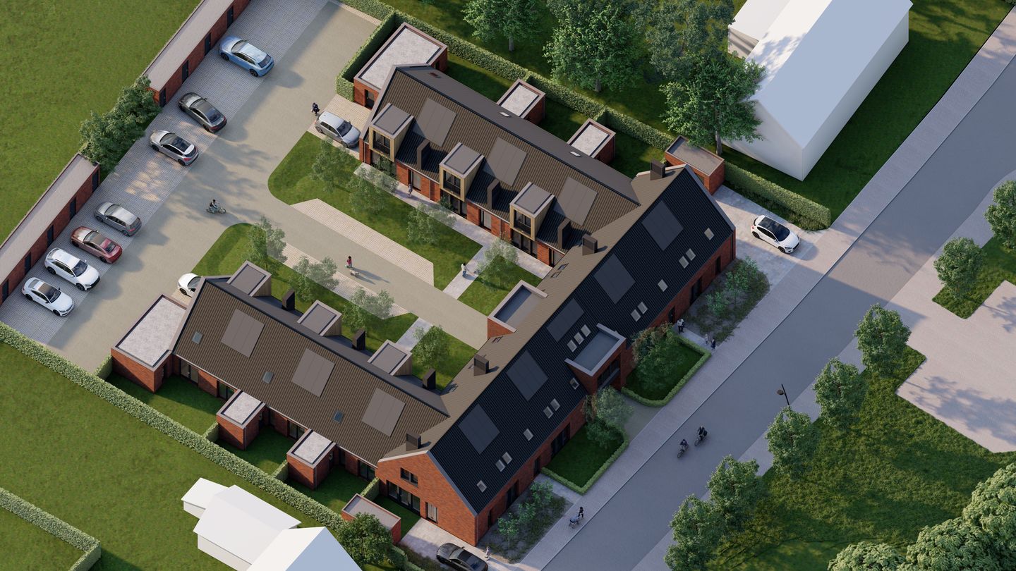 De gezamenlijke binnentuin vormt straks het hart van dit nieuwe woonplan. Een plek waar je buren ontmoet, een praatje maakt of gewoon geniet van het groen voor de deur. Via het poortgebouw bereik je het achtergelegen parkeerterrein, waar elke woning beschikt over 2 privé parkeerplaatsen en een houten berging voor fietsen, tuin-gereedschap of andere spullen. De projectnotaris zal de regels opstellen voor het gezamenlijke onderhoud van de gemeenschappelijke binnentuin en toegangsweg zodat hier in de toekomst geen onduidelijkheden over zullen ontstaan.